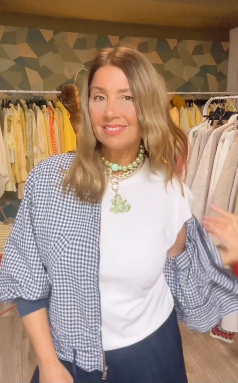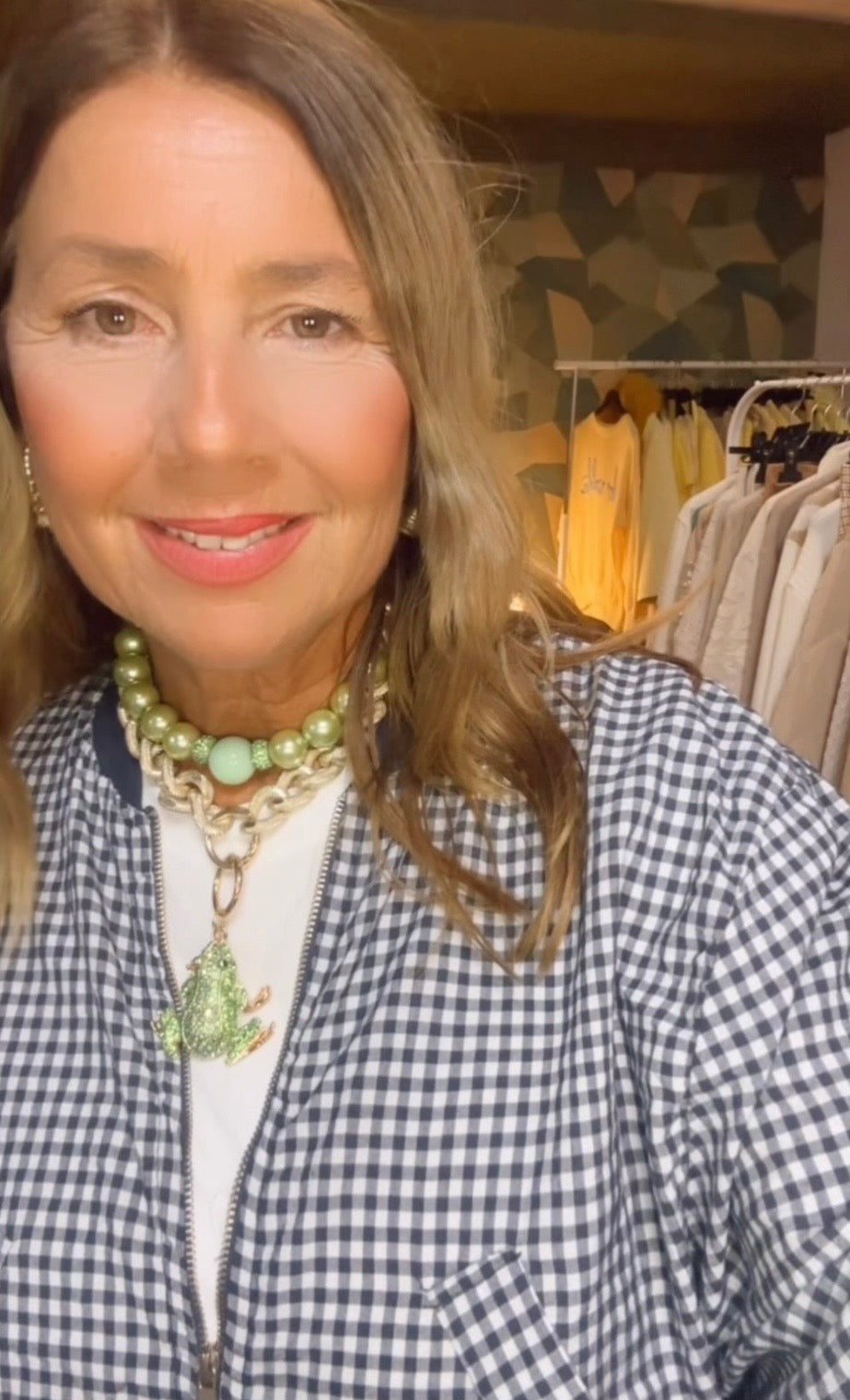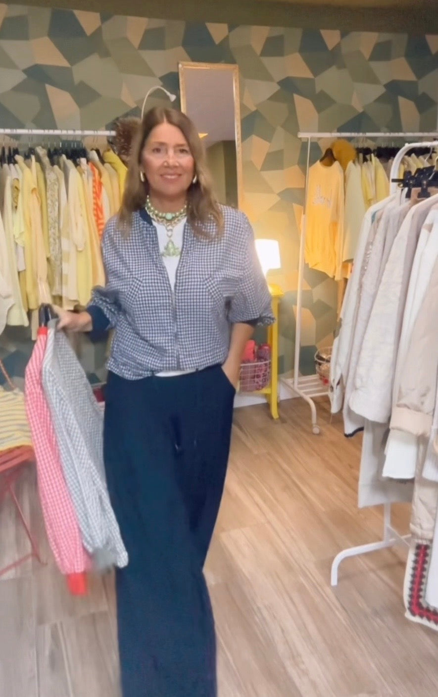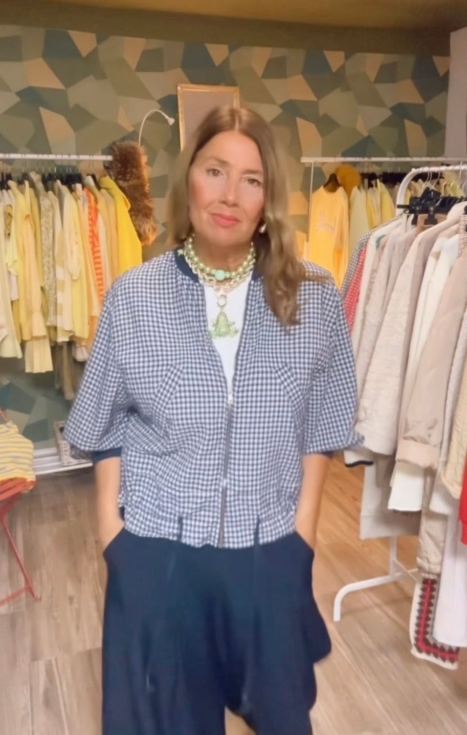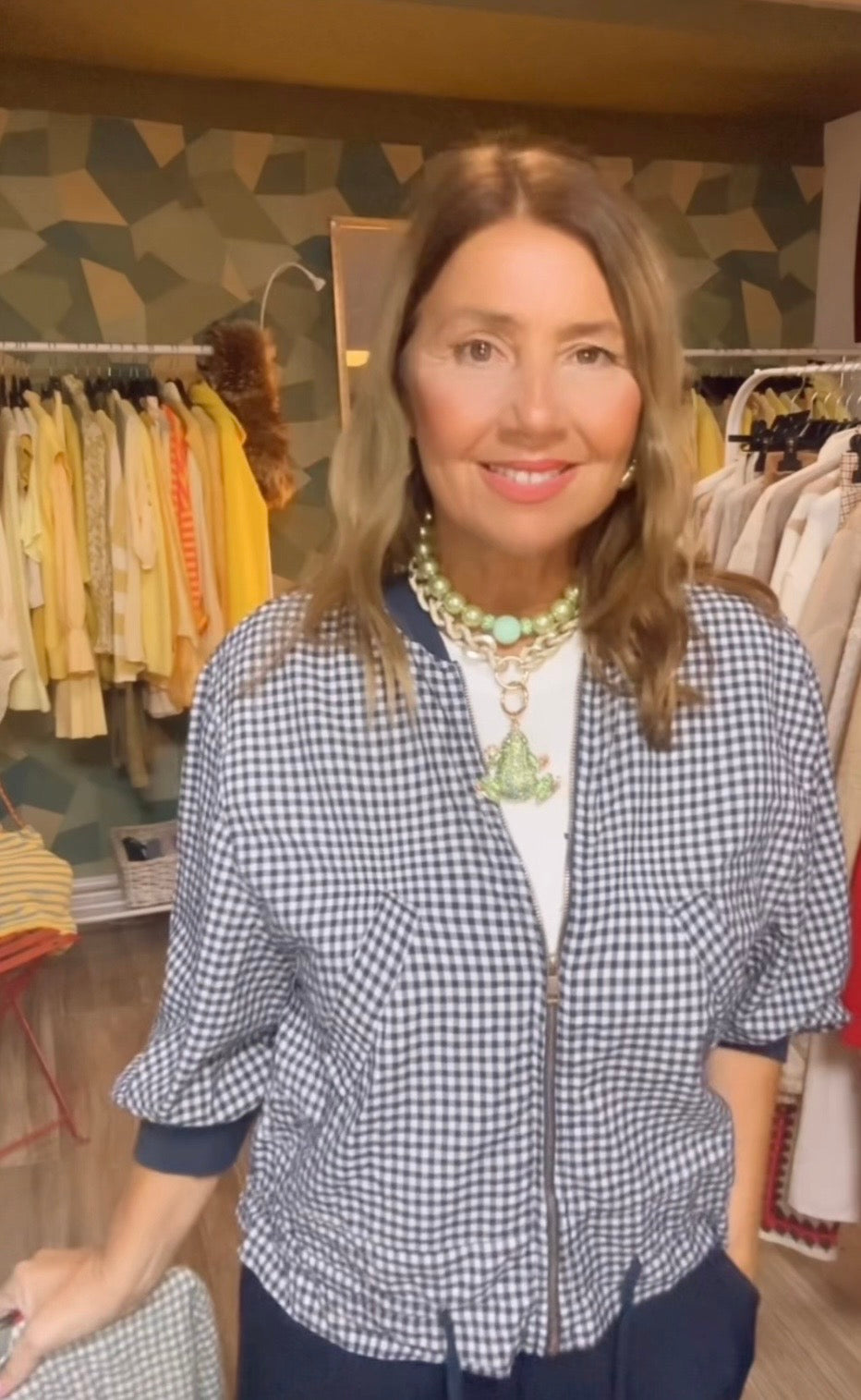 Cazadora de estampado vichi ,con cremallera ,ribete de punto