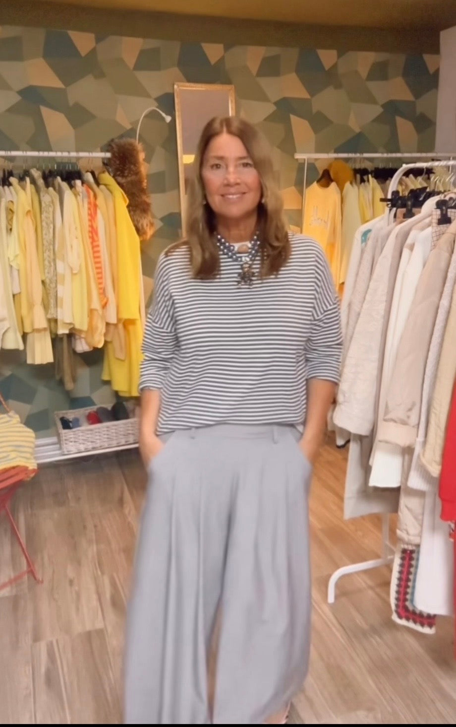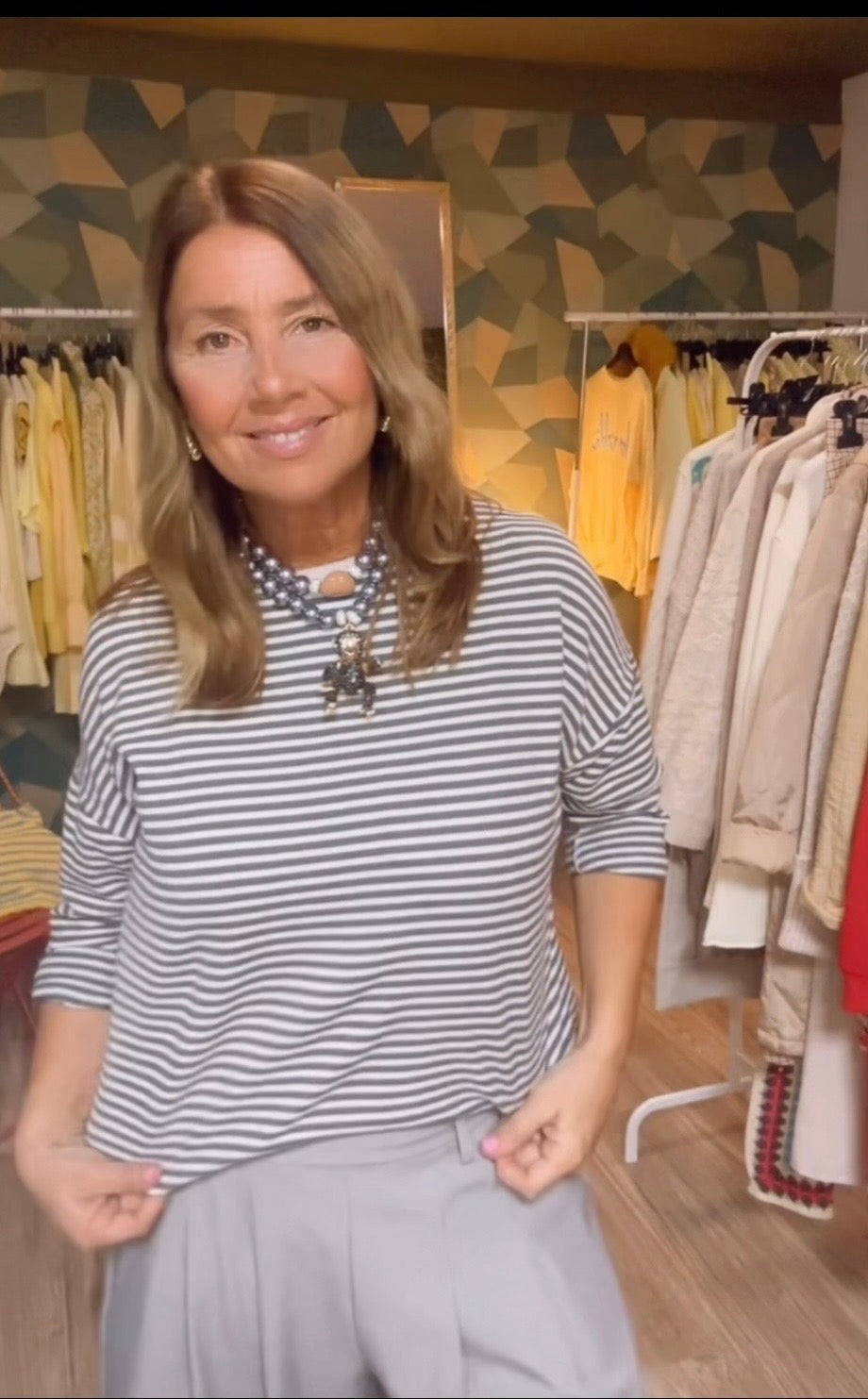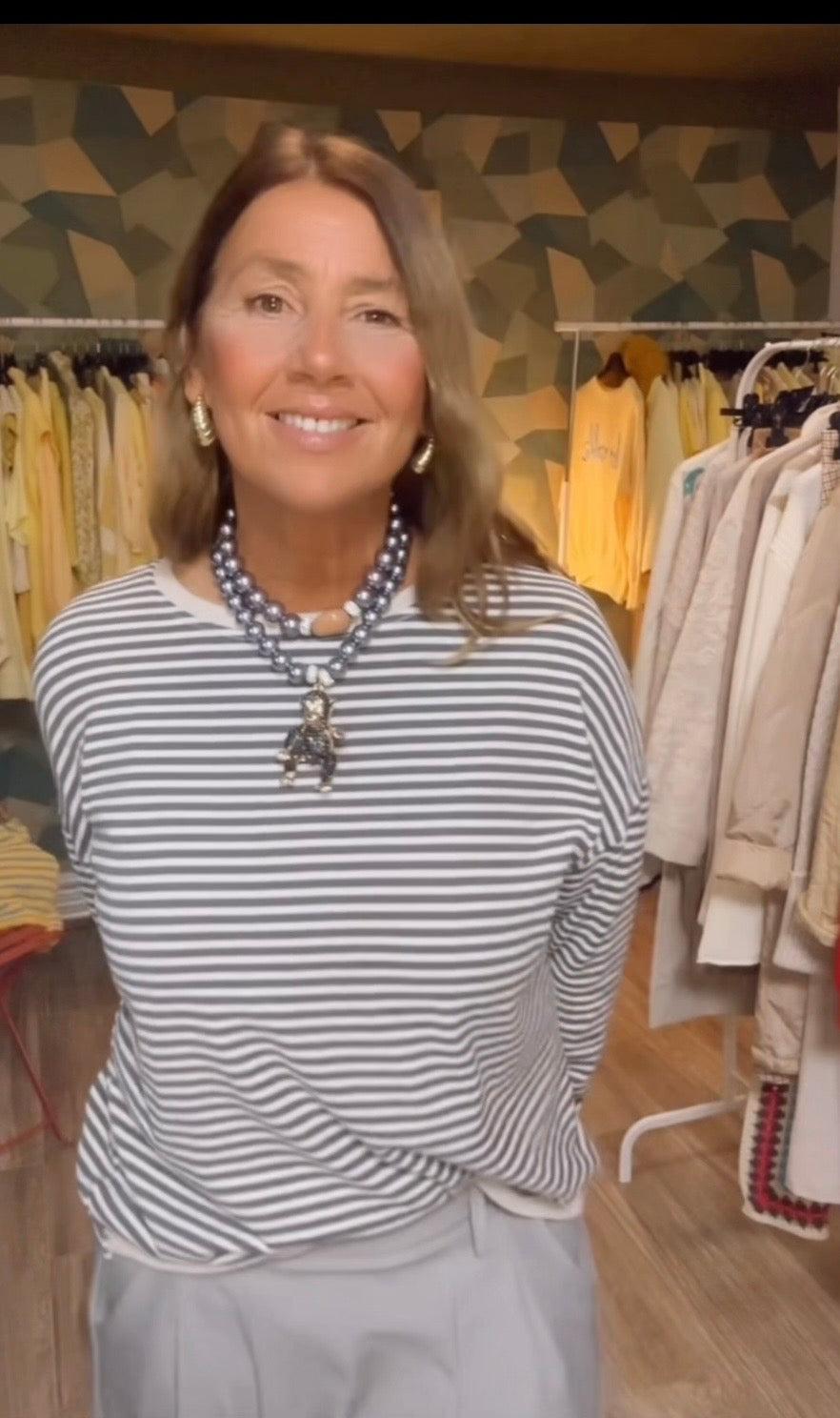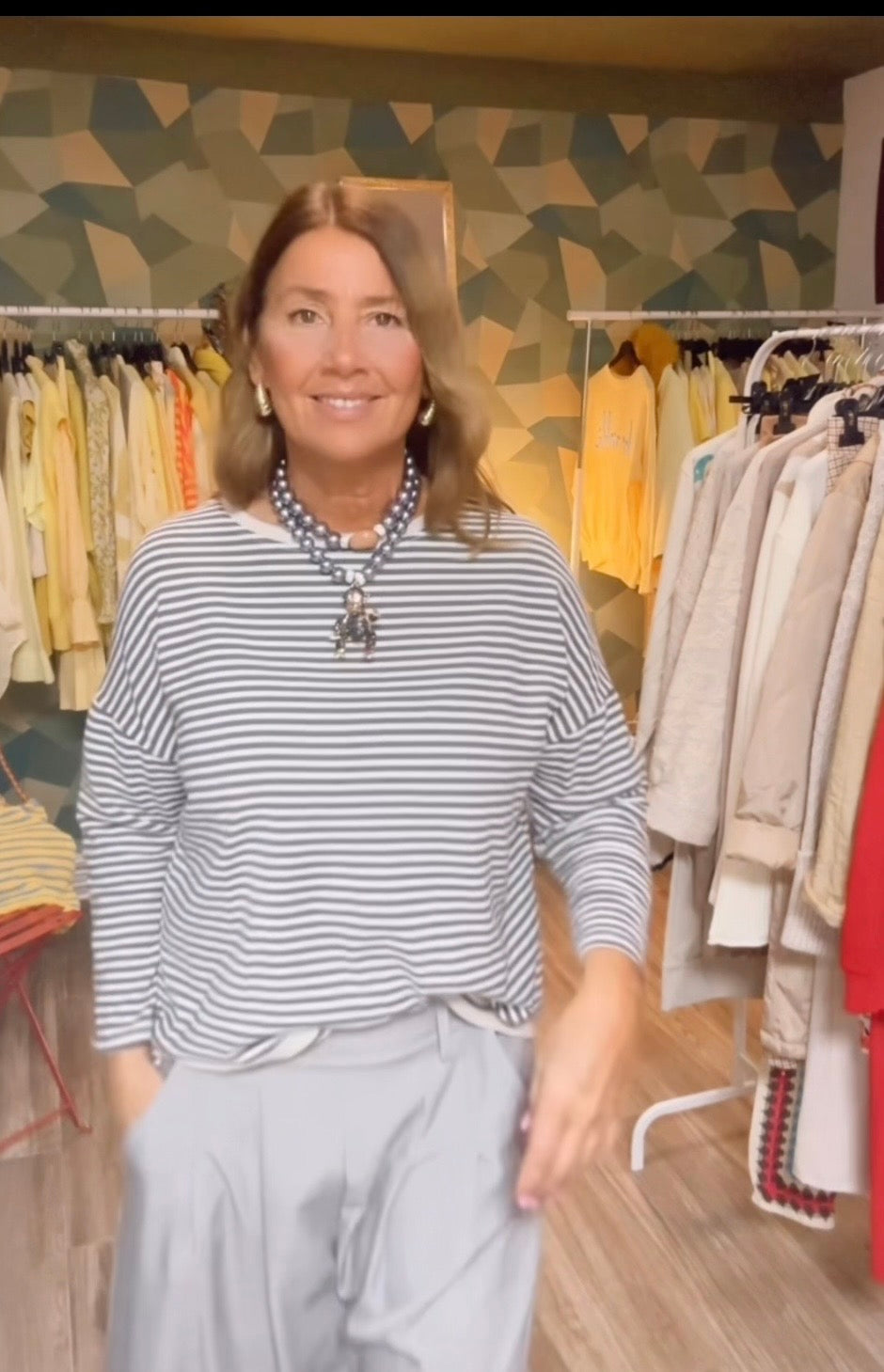 Camiseta tipo sudadera ,manga larga ,ribete beige ,estampado rayas