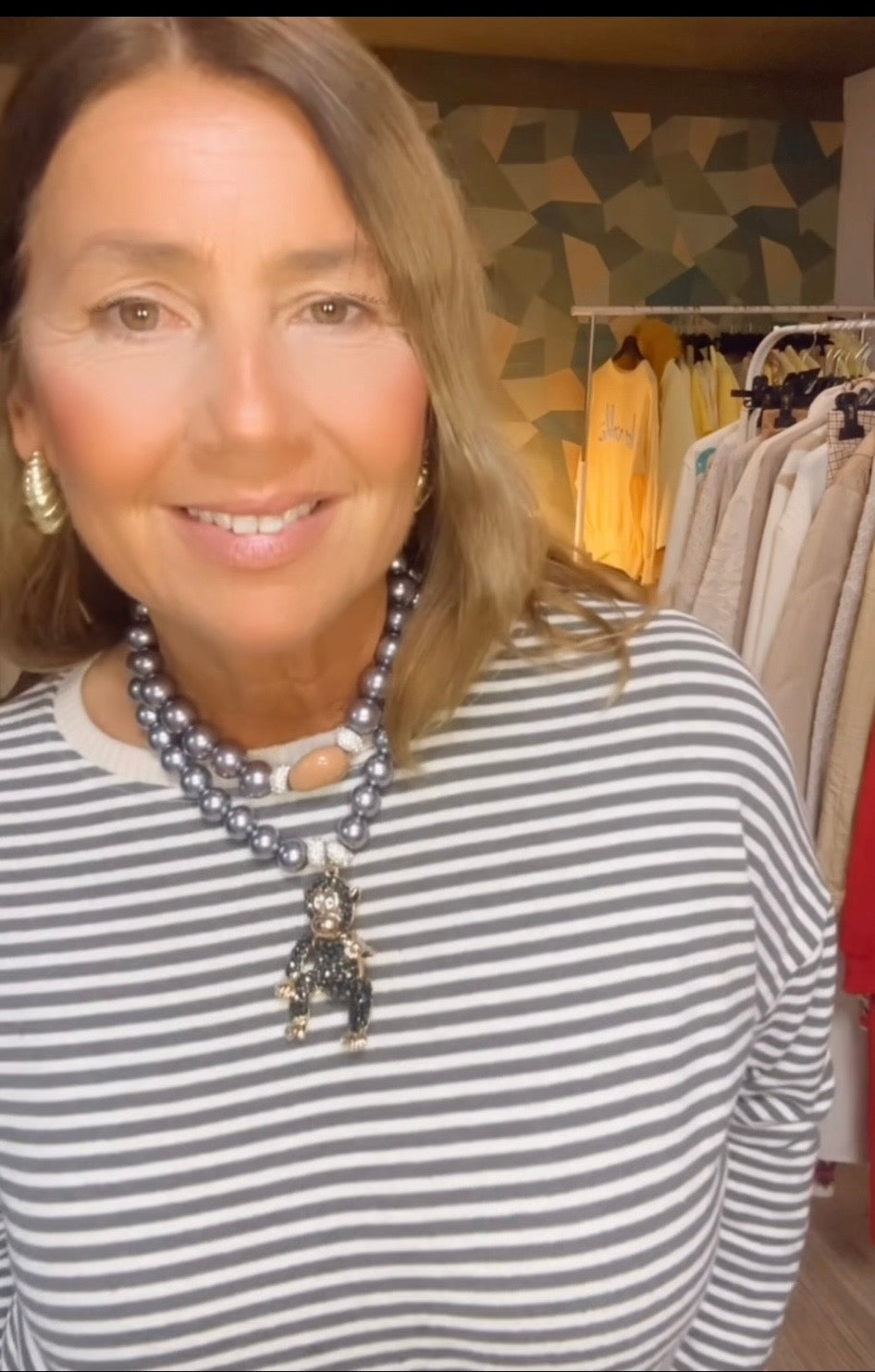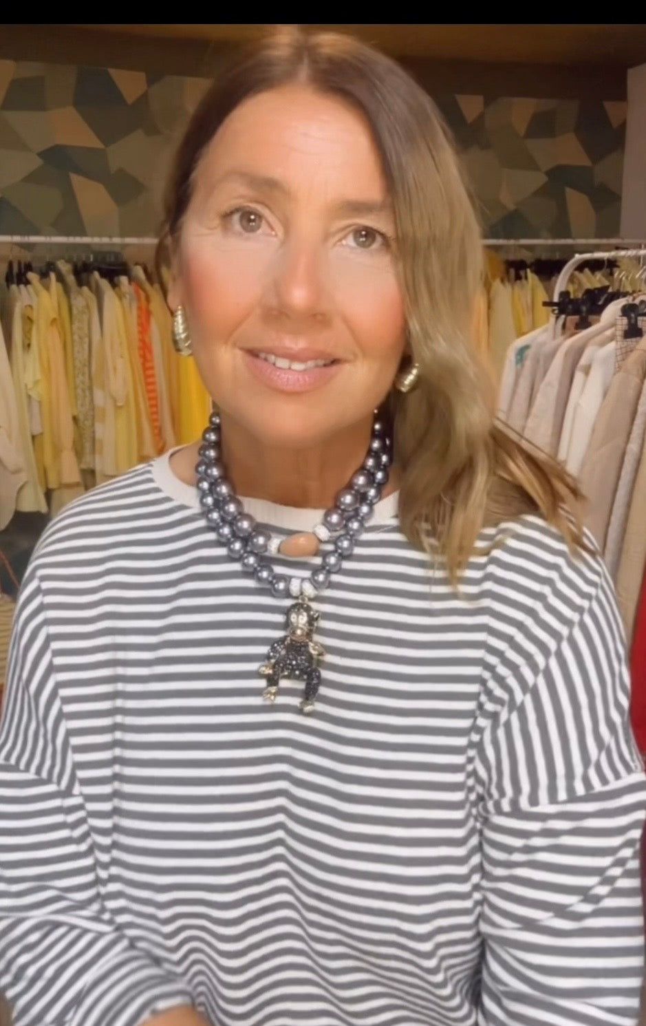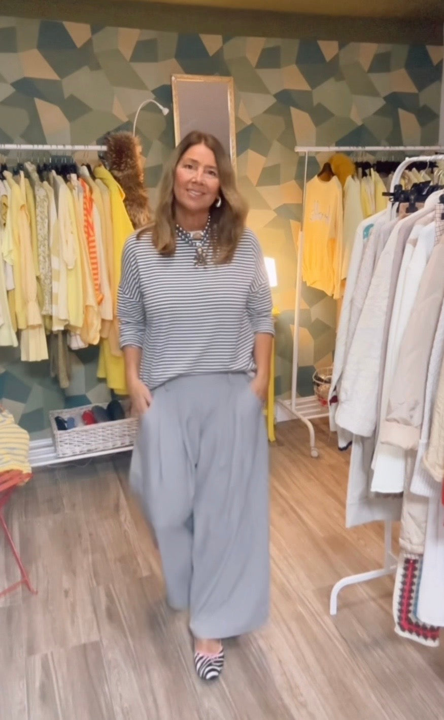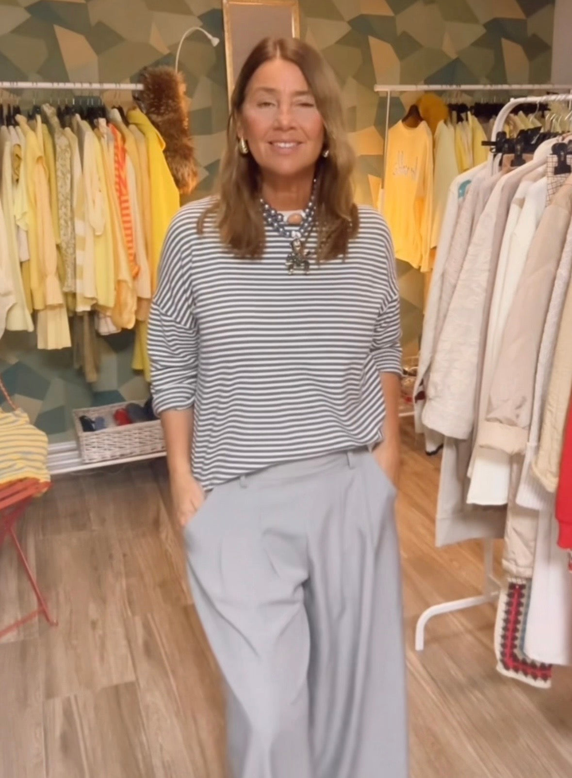 Camiseta tipo sudadera ,manga larga ,ribete beige ,estampado rayas