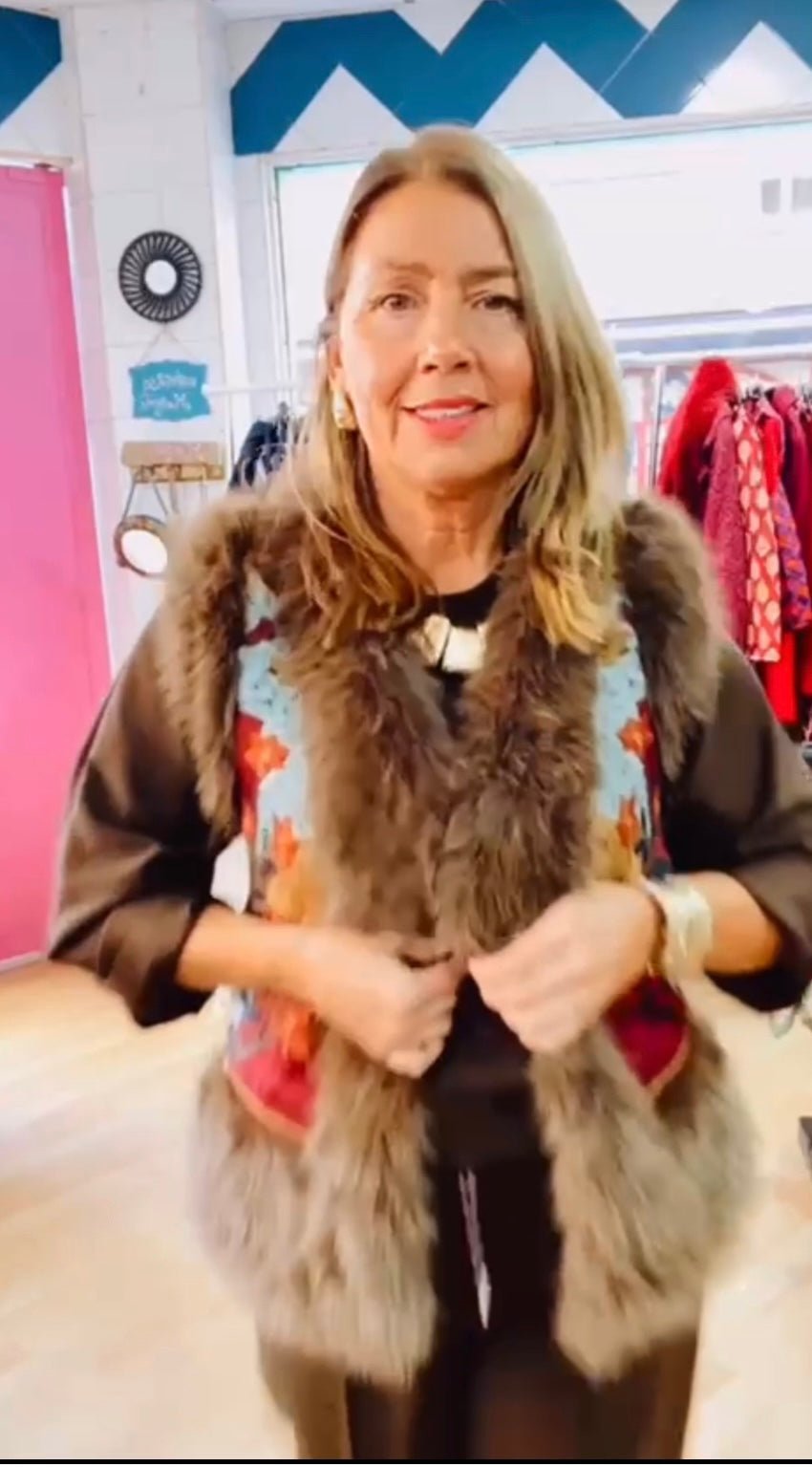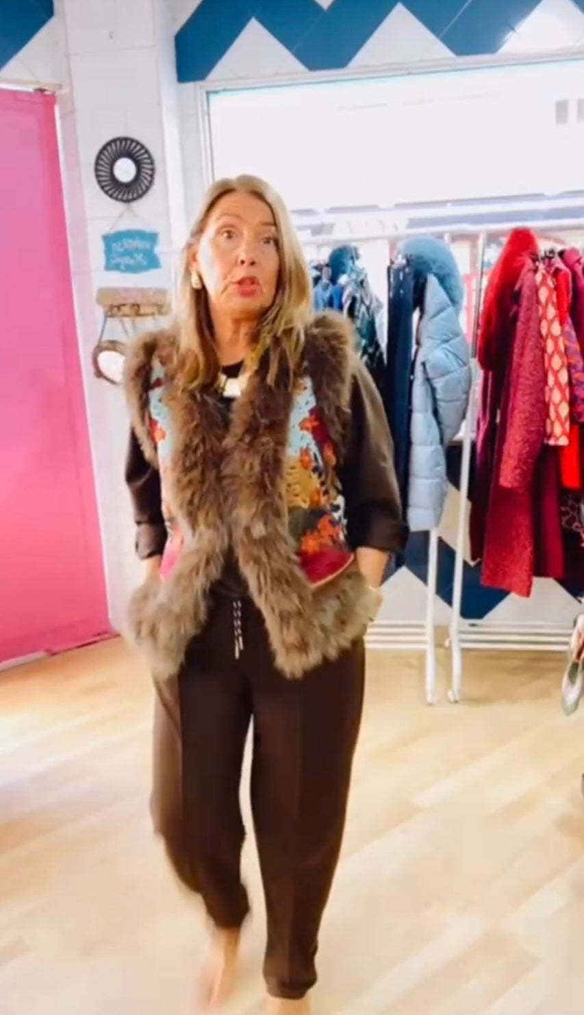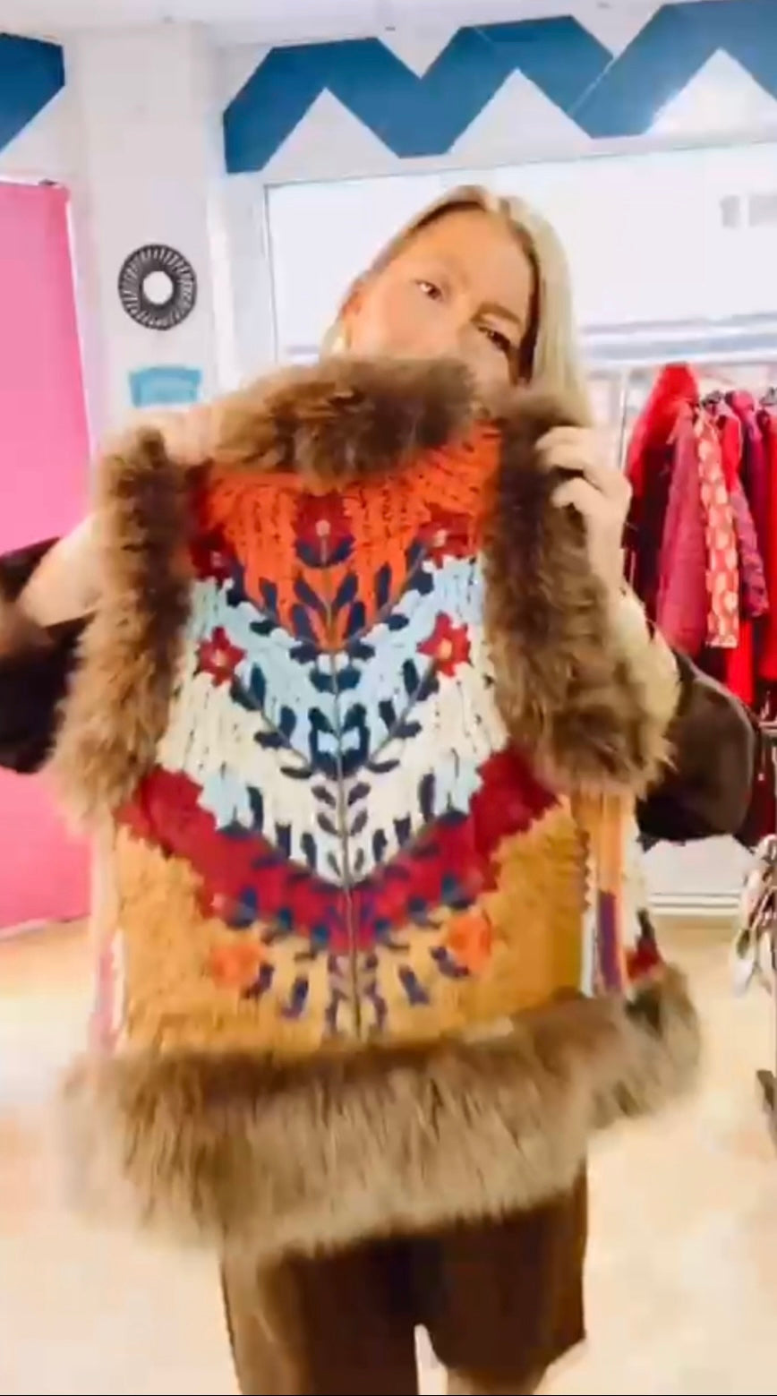 Chaleco bordado tipo tapiz ,con ribete de pelo