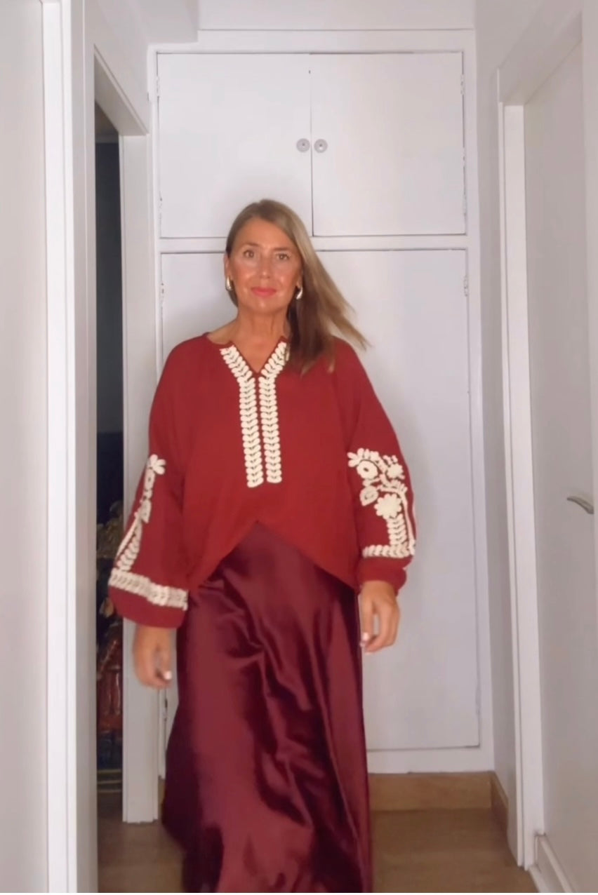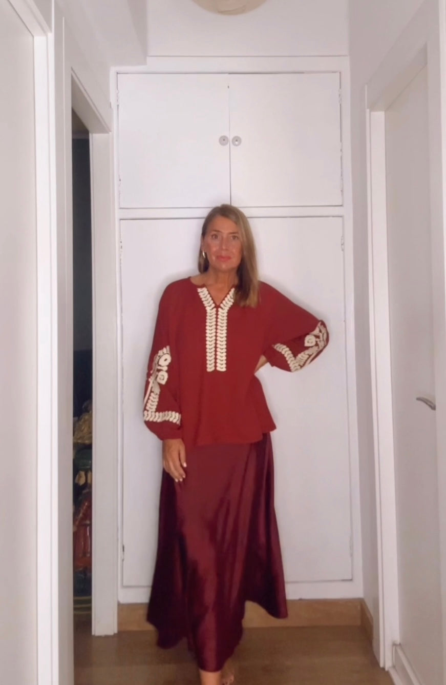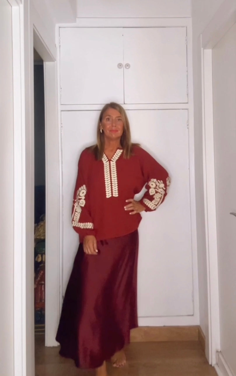Falda saten ,corte al bies ,lo q hace q entalle pero no marque